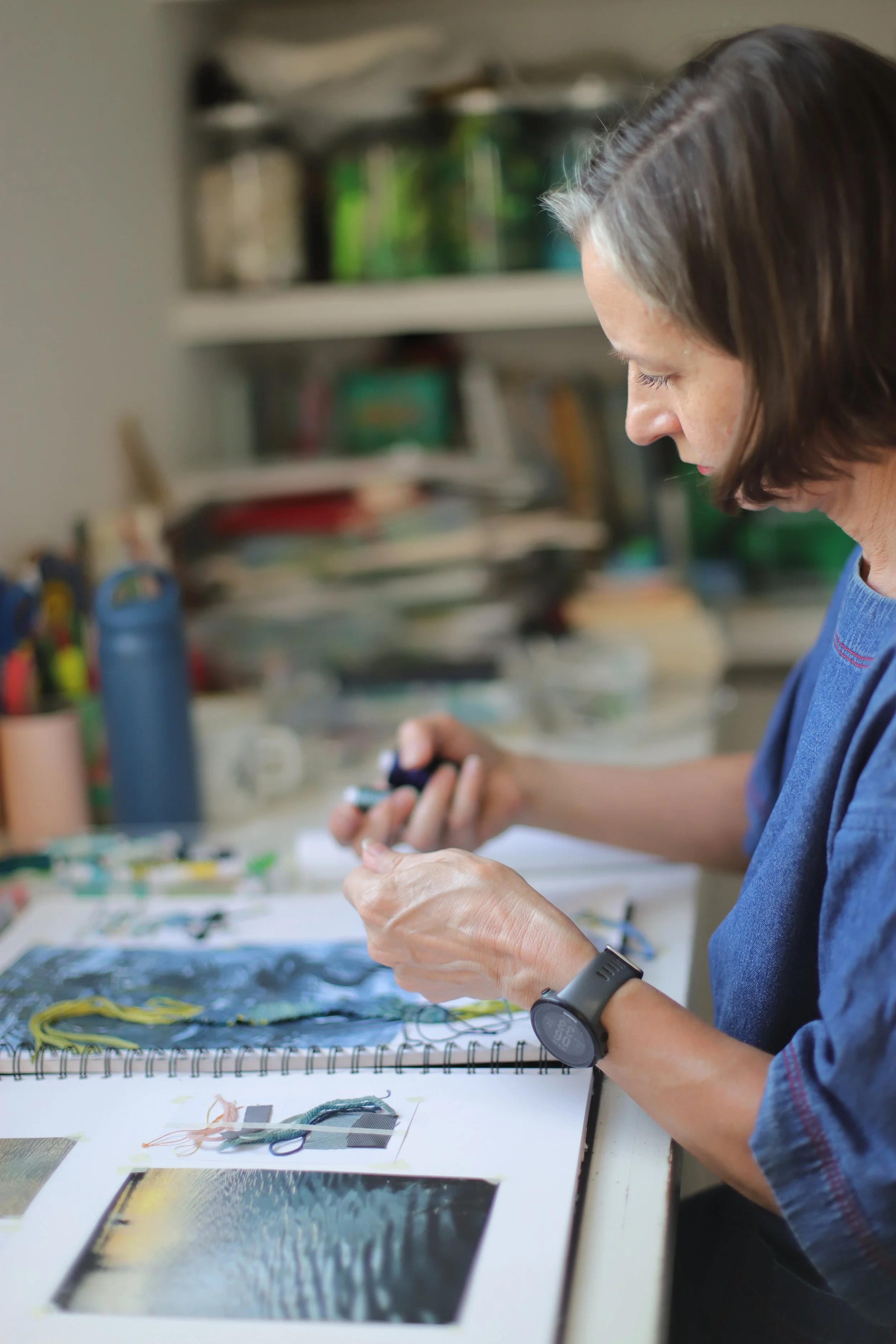 The meditative repetitions and rhythms of swimming and weaving are drawn together to connect and reveal memories in water. Observations and responses to this immersive experience are communicated in a collection of textile pieces.